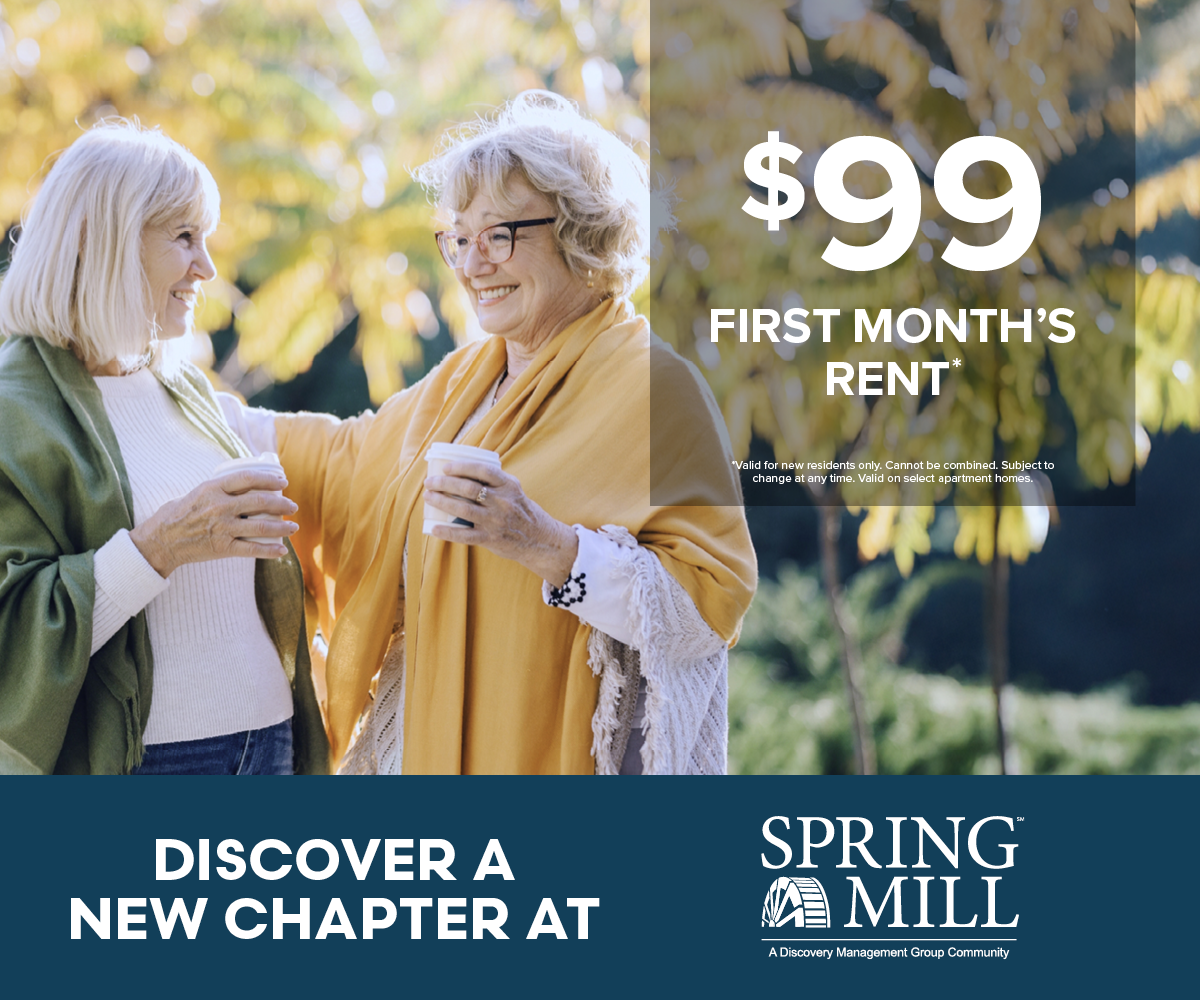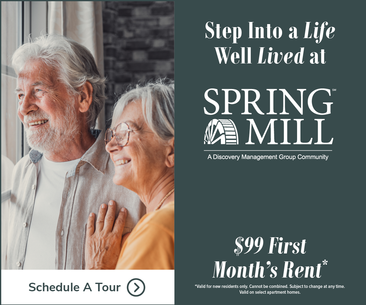 Make the most of every day by taking advantage of the plentiful amenities made available to you here. Experience resort-style living in a comfortable, home-like environment at Spring Mill.